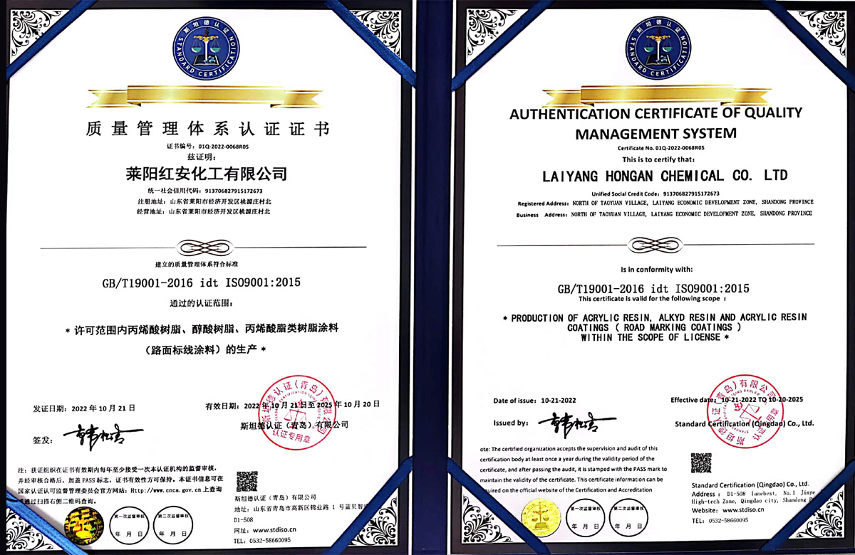 紅安化工經(jīng)過(guò)近二十年的打造和積淀,現(xiàn)已建成了一家專(zhuān)業(yè)研制生產(chǎn)涂料合成樹(shù)脂的綜合型工廠(chǎng),位于山東省半島的腹地--萊陽(yáng)市。公司已通過(guò)了三體系認(rèn)證,即ISO9000質(zhì)量管理體系認(rèn)證和環(huán)境、職業(yè)健康安全管理體系認(rèn)證,并獲得了六項(xiàng)國(guó)家發(fā)明專(zhuān)利,八項(xiàng)實(shí)用新型專(zhuān)利;19年榮獲山東省高新企業(yè)稱(chēng)號(hào),22年通過(guò)了復(fù)審;22年榮獲山東省瞪羚企業(yè)稱(chēng)謂,還有其他一些榮譽(yù)稱(chēng)號(hào)不再一一敘說(shuō)。 公司現(xiàn)有樹(shù)脂合成反應(yīng)釜29套,各類(lèi)樹(shù)脂年生產(chǎn)能力約8萬(wàn)噸,具有完善的檢測(cè)儀器和應(yīng)用服務(wù)條件。